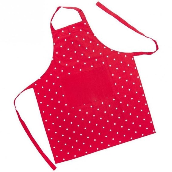 BAWEŁNIANY - Bawełniany, wiązany fartuch kuchenny w czerwonym kolorze z linii TECKA. Posiada efektowane zdobienie w postaci białych kropek. Stylowy fartuch będzie ciekawym elementem ochronnym i ozdobnym odzieży w kuchni. Fartuch kuchenny o wymiarach 71 x 86 cm.