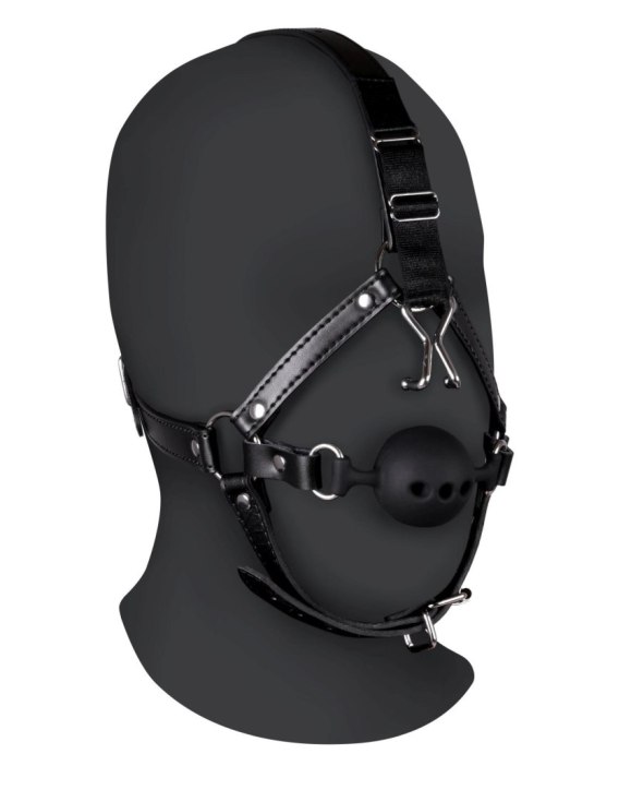 Head Harness with Breathable Ball Gag and Nose Hooks - Black Ouch!