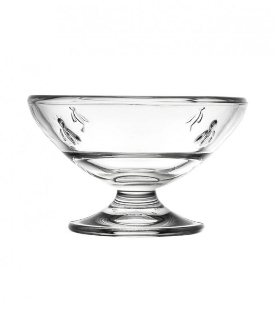 Zachwycający elegancją i prostotą pucharek z emblematycznej kolekcji Abeille (Pszczoła), wykonany z prasowanego szkła, sygnowana wypukłym motywem pszczoły. Idealnie nadaje się do serwowania lodów, deserów i owoców.