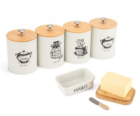 ZESTAW 4 POJEMNIKÓW KUCHENNYCH I MASELNICZKA E-6056 Elitehoff