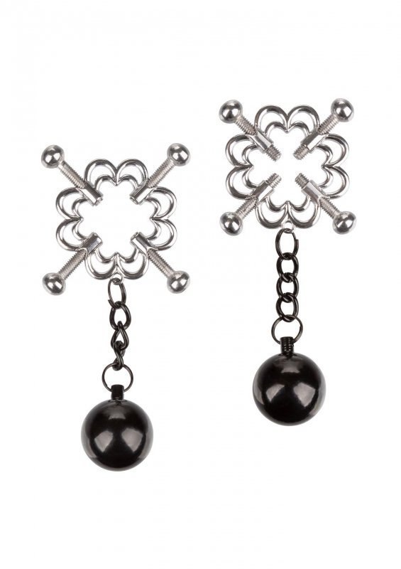 The Nipple Grips 4-Point Weighted Nipple Press is designed for sensational nipple play. Tighten the screws to exactly the pressure you desire, and let the weights pull and tug for even more intense pleasure.