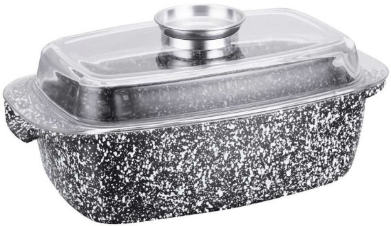 Brytfanna z pokrywą pokryta ceramiczną marmurową powłoką nieprzywierającą. Naczynia wykonane ze stopu aluminium posiadają indukcyjne ferromagnetyczne dno. Są przystosowane do współpracy z każdym rodzajem kuchni, także płytami indukcyjnymi. Naczynie w komplecie posiada żaroodporną pokrywę z aromatyzerem, dzięki której możemy uzupełnimy płyny w przygotowywanej potrawie bez ściągania pokrywy co pozwoli nam nie utracić tak niezbędnych w pożywieniu witamin i nada potrawie wspaniały smak.