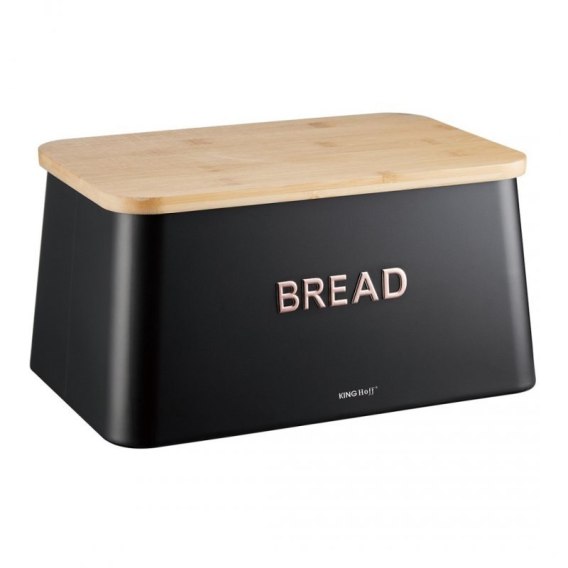 Nowoczesny chlebak marki KINGHoff to połączenie elegancji i funkcjonalności. Wykonany z wysokiej jakości metalu i zamykany bambusową pokrywą, która pełni także funkcję praktycznej deski do krojenia.