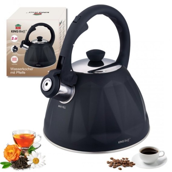 CZAJNIK 2L Z GWIZDKIEM KINGHOFF KH-1997 CZARNY MAT Kinghoff