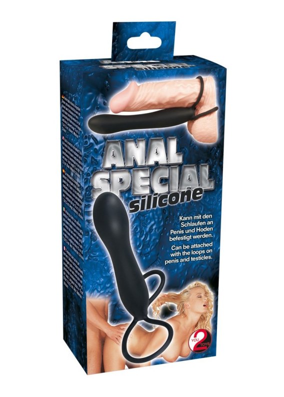 Mniejsza pętelka u podstawy dilda służy jako poprawiający sprawność pierścień na penisa, z kolei większa obejmie jądra mocnym uściskiem..