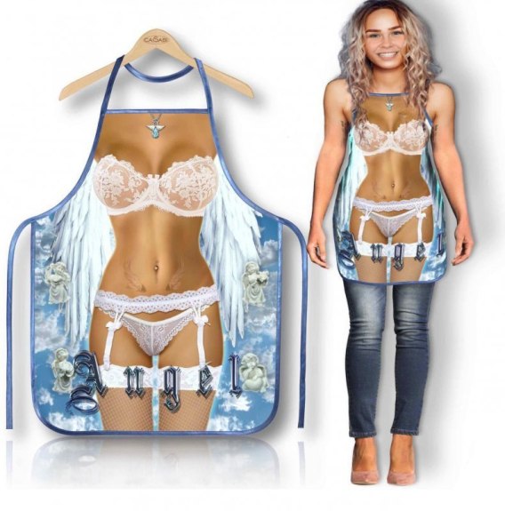 Seksowny fartuszek Angel to zabawny i zmysłowy gadżet, który idealnie sprawdzi się jako prezent dla osób z poczuciem humoru.Fartuszek przedstawia ciało anielskiej piękności w białej koronkowej bieliźnie z delikatnymi skrzydłami — połączenie niewinności i kuszącego wdzięku.Wykonany z trwałego, łatwego w czyszczeniu materiału, doskonały do użytku w kuchni, na imprezach lub wieczorach panieńskich.Z regulowanym paskiem na szyję i praktycznymi troczkami, zapewnia komfort i dopasowanie dla każdego.Doskonały pomysł na prezent dla osób, które lubią łączyć gotowanie z dobrą zabawą!????