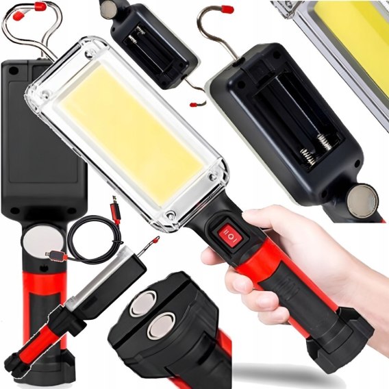 LAMPA LATARKA WARSZTATOWA KANAŁOWA LED AKUMULATOROWA MAGNES HAK GARAŻOWA XL