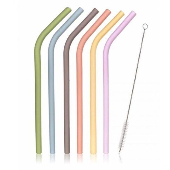 SŁOMKI SILIKONOWE DO NAPOJÓW WIELORAZOWE 6 szt. + CZYŚCIK BANQUET Banquet