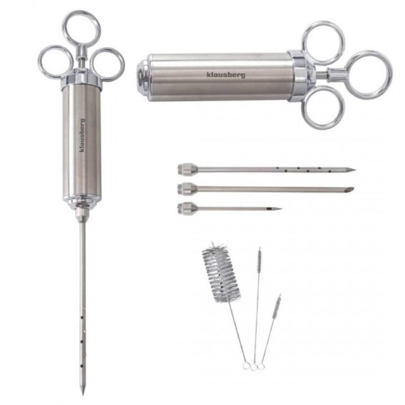 KLAUSBERG KB-7842 - Odkryj głębię smaku Zadbaj o doskonałe przyprawienie mięsa od środka - niezależnie od okazji. Strzykawka do marynat KB-7842 to niezbędne narzędzie w każdej kuchni pasjonata gotowania i grillowania. Świetnie sprawdzi się również jako praktyczny i stylowy prezent.