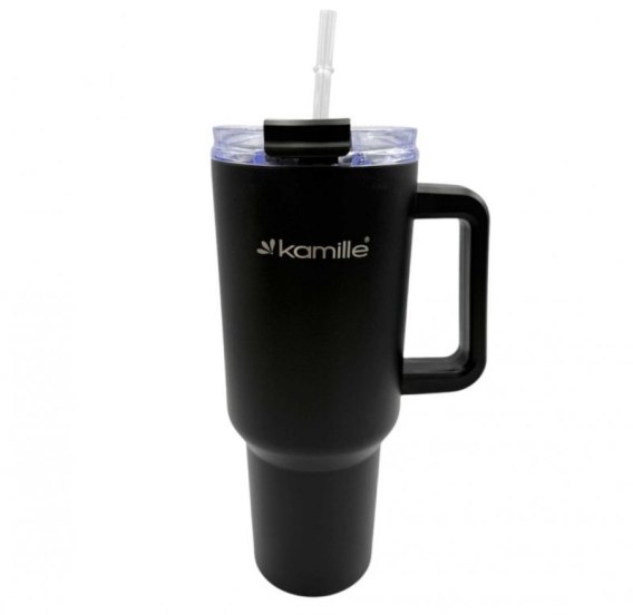 STALOWY KUBEK TERMICZNY TERMOS 1200ml Z RĄCZKĄ I SŁOMKĄ KM-2172 Kamille