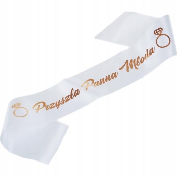 Szarfa biała z nadrukiem rose gold Przyszła Panna Młoda PropaGanda