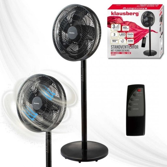 Nowoczesny wentylator stojący KLAUSBERG KB-9041 to doskonałe rozwiązanie na gorące dni, które zapewnia skuteczny przepływ powietrza w różnych przestrzeniach - od domu po biuro czy lokal usługowy. Duża średnica 40 cm (16"), regulowana wysokość oraz funkcja oscylacji sprawiają, że urządzenie efektywnie chłodzi nawet większe pomieszczenia. Dodatkowym atutem jest pilot zdalnego sterowania oraz panel dotykowy z wyświetlaczem LED, które znacząco podnoszą komfort obsługi.