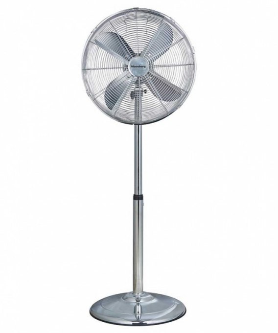 Łatwy w montażu, wentylator podłogowy, dający delikatne uczucie chłodu w upalne dni. Urządzenie posiada trzystopniową regulację prędkości nawiewu. Wyposażone jest w funkcję automatycznej oscylacji, dzięki czemu może obracać się w  kierunkach bocznych. Zwiększa to zasięg oddziaływania urządzenia. Solidna podstawa zapobiega upadkowi, a możliwość regulacji wysokości za pomocą rury teleskopowej, pozwala dodatkowo na ustawienie odpowiedniego pułapu nawiewu. Wentylator wykonany jest z chromowanego metalu co nadaje mu elegancką, nowoczesną formę.