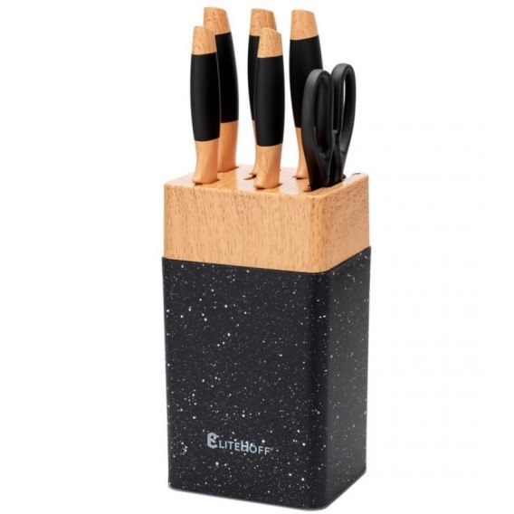 ZESTAW NOŻY KUCHENNYCH W STOJAKU Z OSTRZAŁKĄ E-6267 Elitehoff