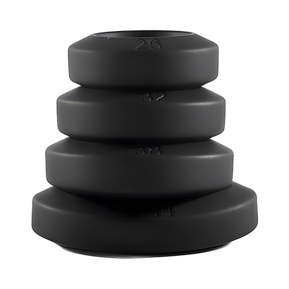 Zestaw pierścieni BRUTUS oferuje cztery różne średnice wewnętrzne: 26 mm, 32 mm, 38 mm i 44 mm. Ten przemyślany wachlarz rozmiarów umożliwia dopasowanie do różnych części ciała oraz różnych poziomów napięcia. Można użyć najmniejszego jako pierścienia zaciskającego podstawę prącia, średnich jako elementów utrzymujących ciśnienie wokół nasady lub moszny, a największego jako wygodnego pierścienia kulkowego lub do budowania kombinacji z innymi pierścieniami w formie wielowarstwowej konstrukcji napięcia. Dzięki rozciągliwości materiału każdy z rozmiarów pasuje niezależnie od anatomii użytkownika, oferując zarówno komfort, jak i kontrolę.